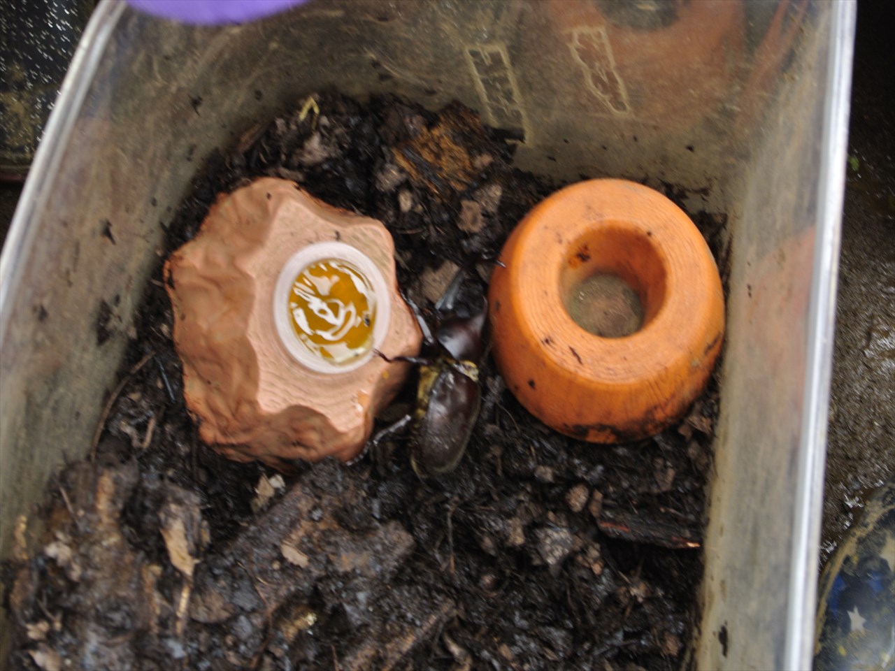 カブトムシ!!卒園したお友だちが幼虫でくれたものがカブトムシになったのでした!!みんな大喜びでしたよ〜〜