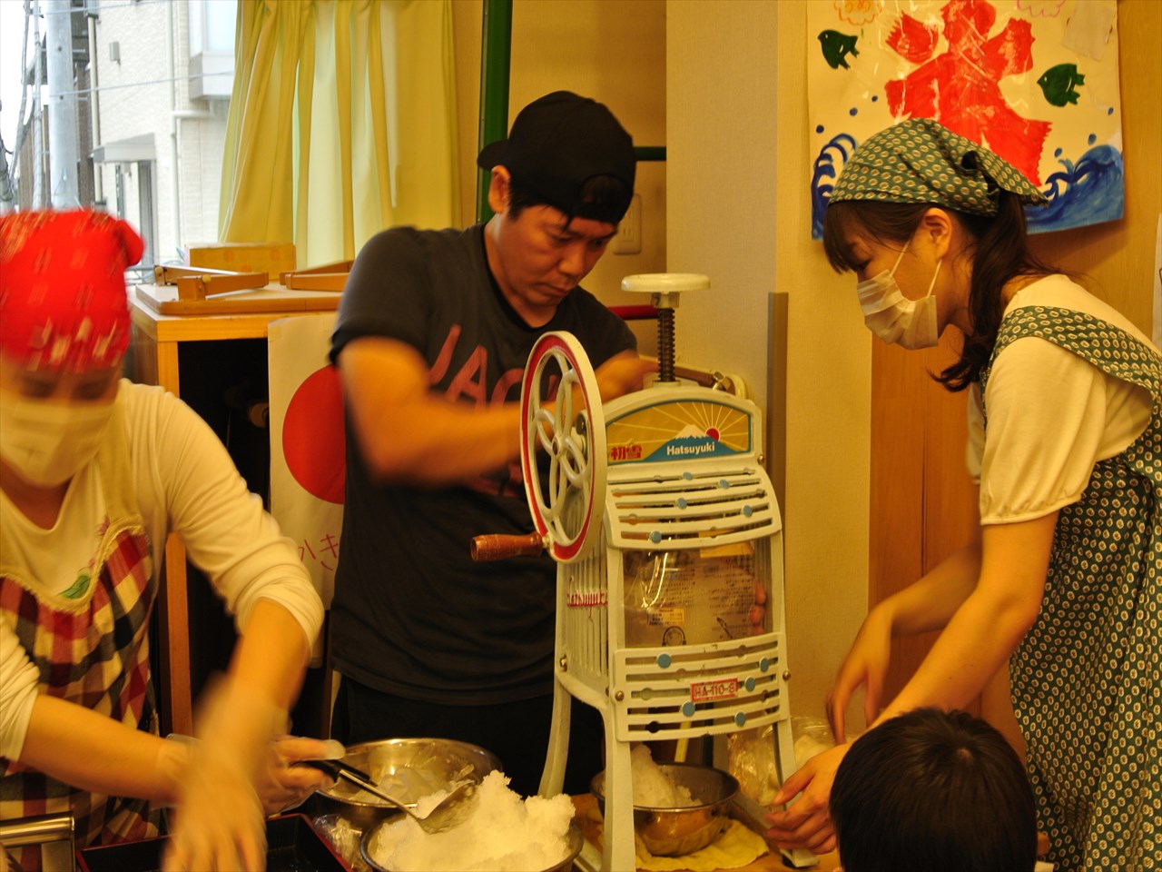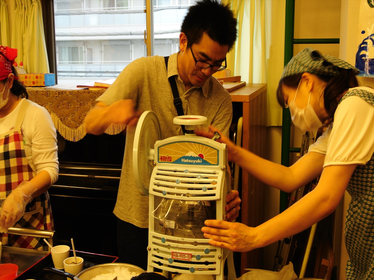 参加したお父さんにかき氷を急遽手伝っていただきました。