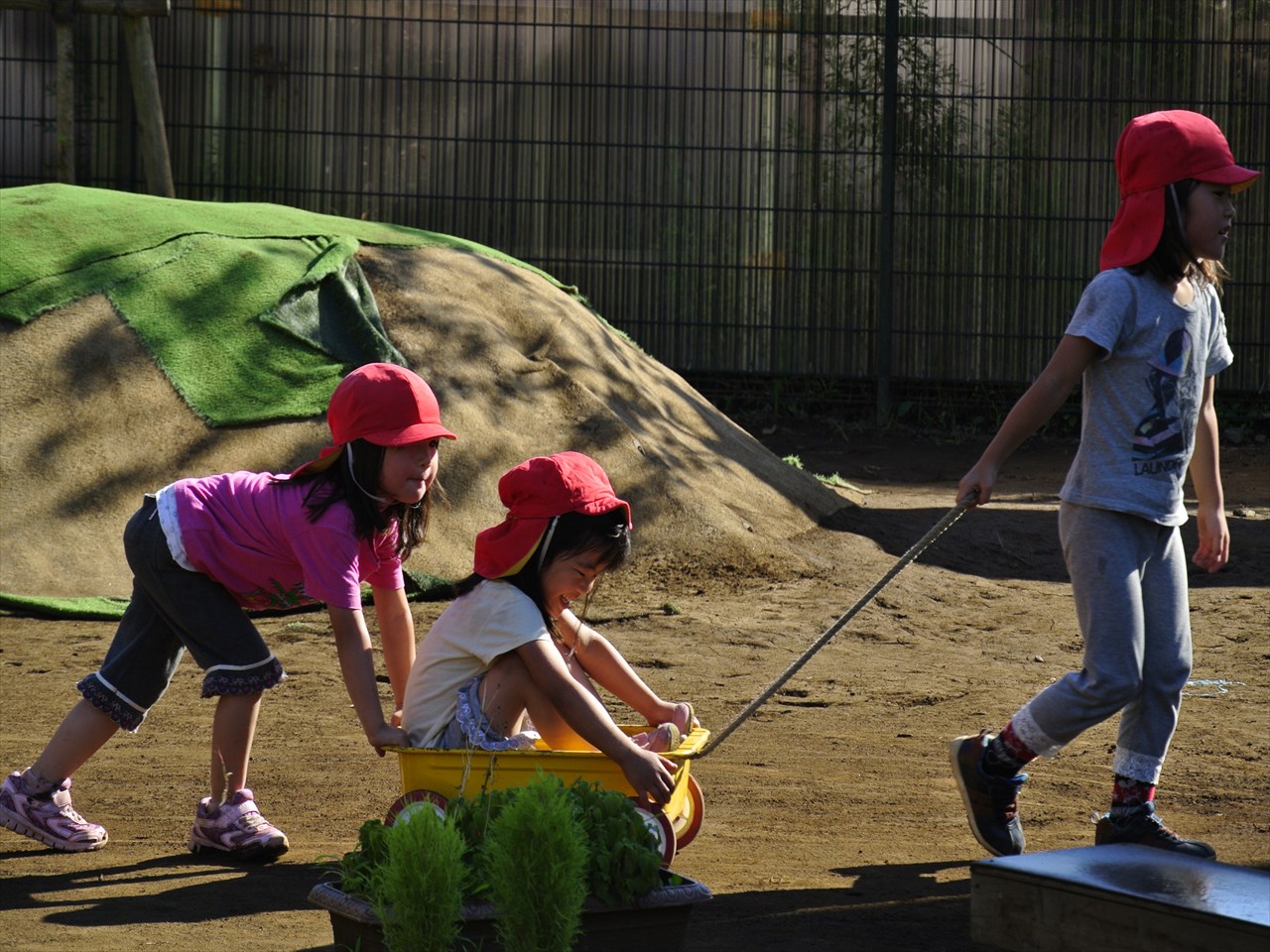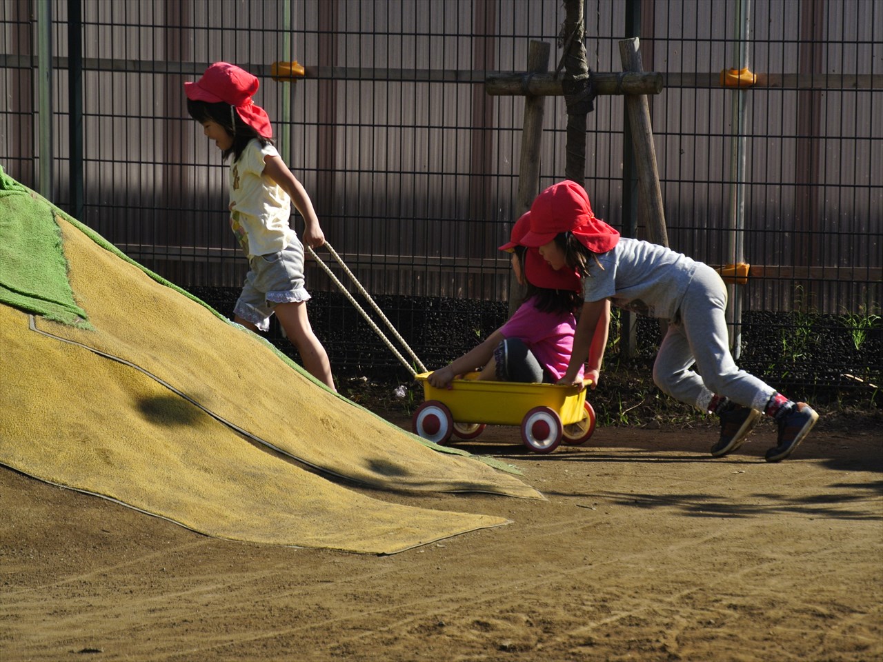 いただいた引き車 物を載せたり、お友だちを載せたり・・