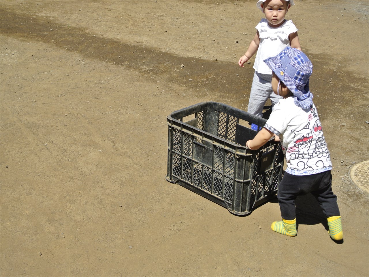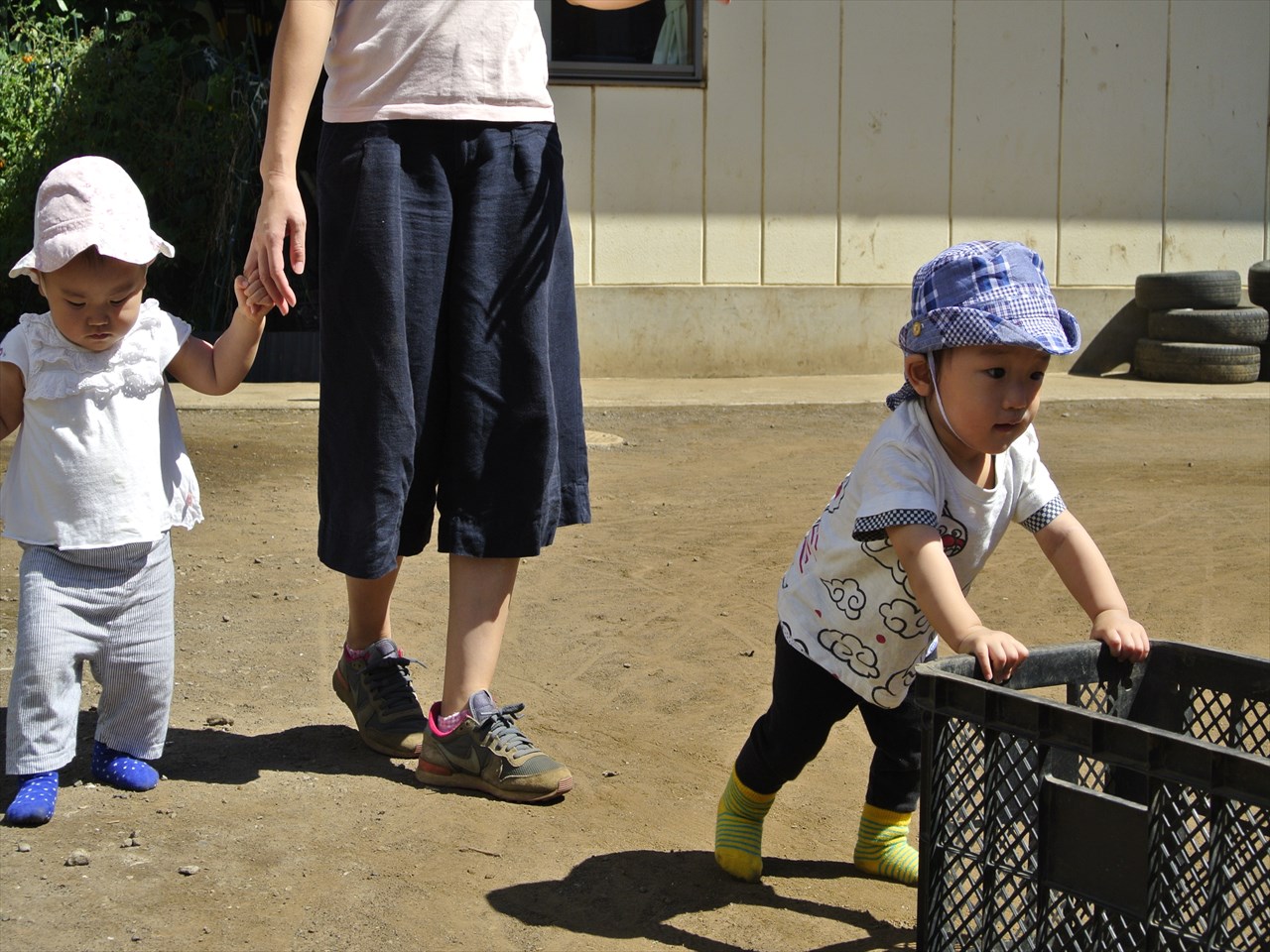 歩行がしっかりしてきたゆず組さんも少しずつ、園庭に出るようになってきました。