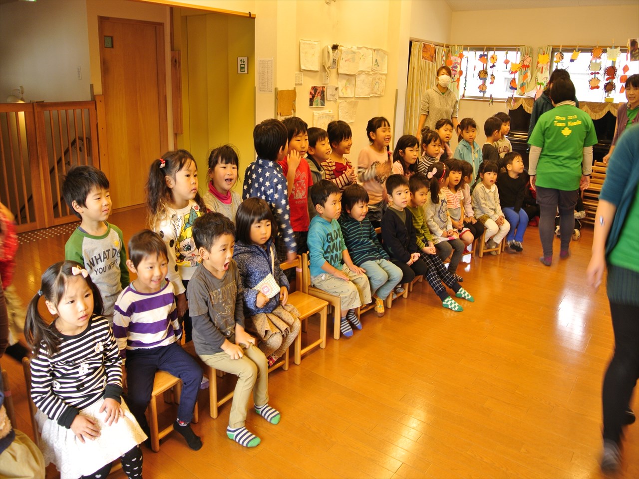 朝、雨がパラパラと降っていて、とても寒く、大丈夫かな?と心配でしたが、始まるころには日差しが出てきて、暑いほどでして。幼児さんの歌も上手でした。みんないつもより、ちょっと・・とってもおしゃれでしたね^^