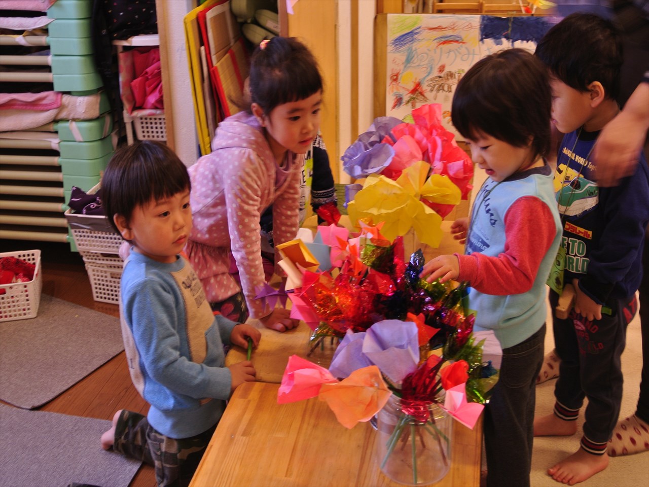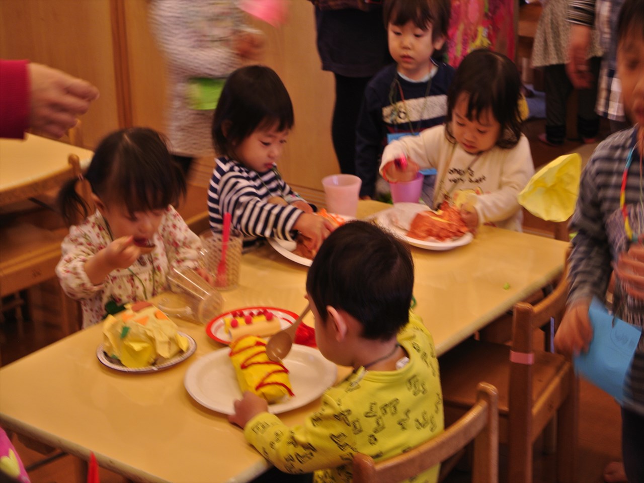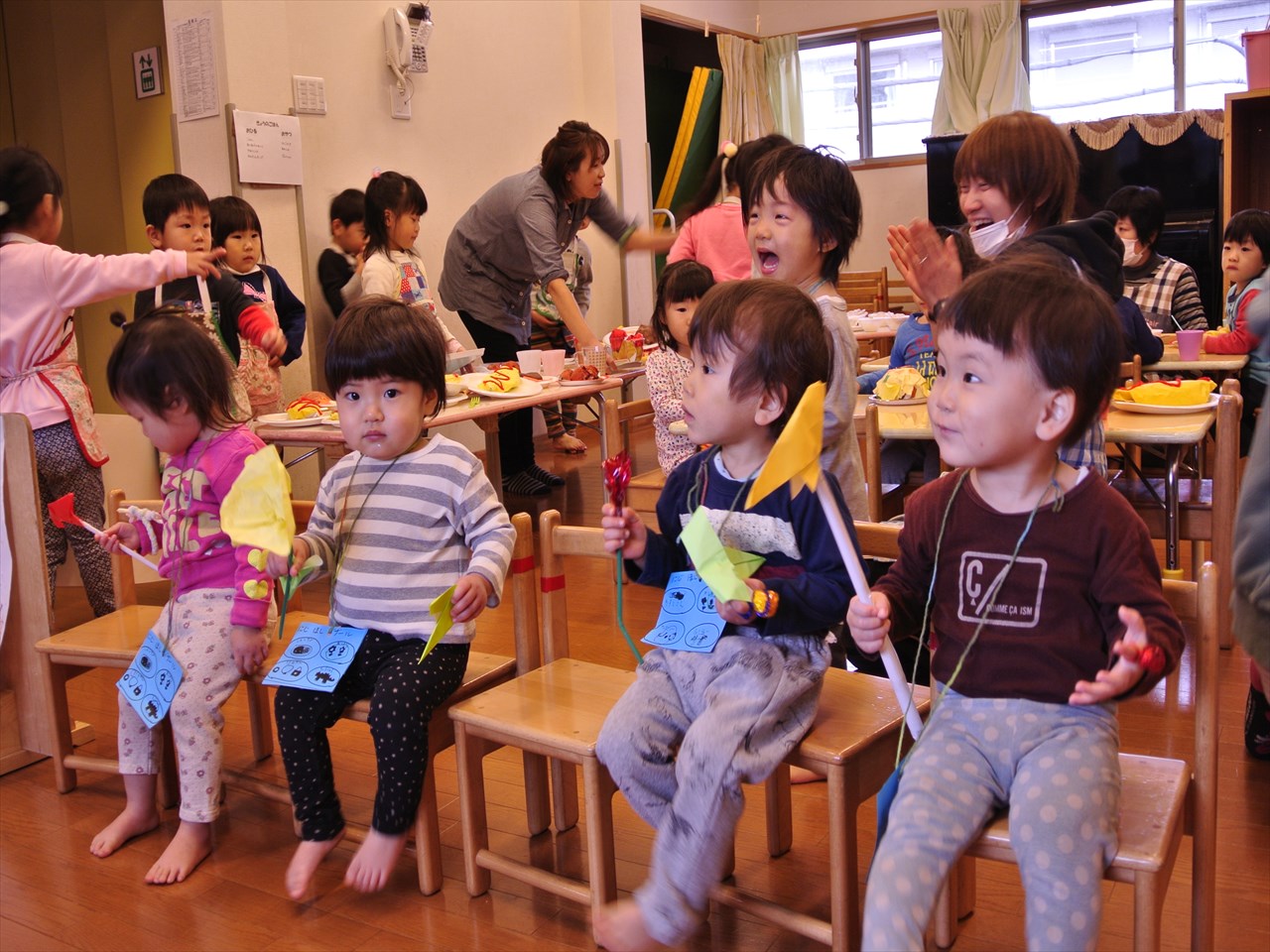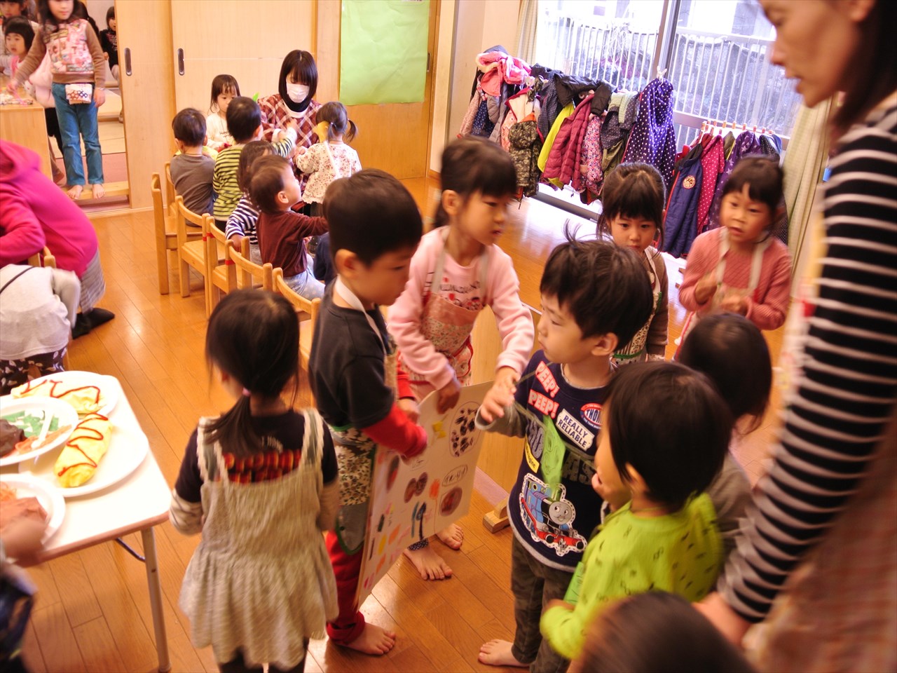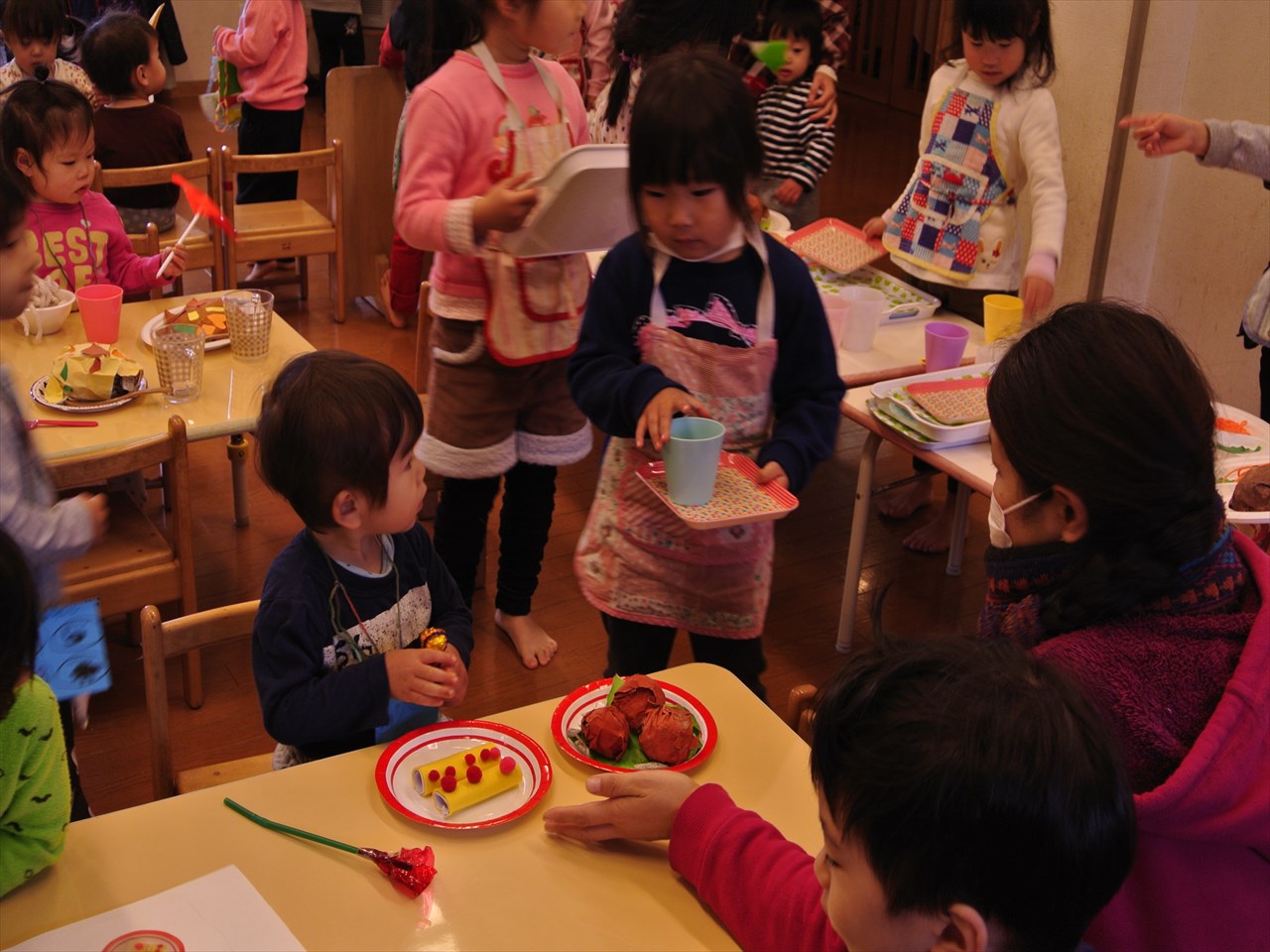 にじ・ほしバザール開催しました。それぞれのお店屋さんには豪華な品物が並びました。 レストランの案内役♪