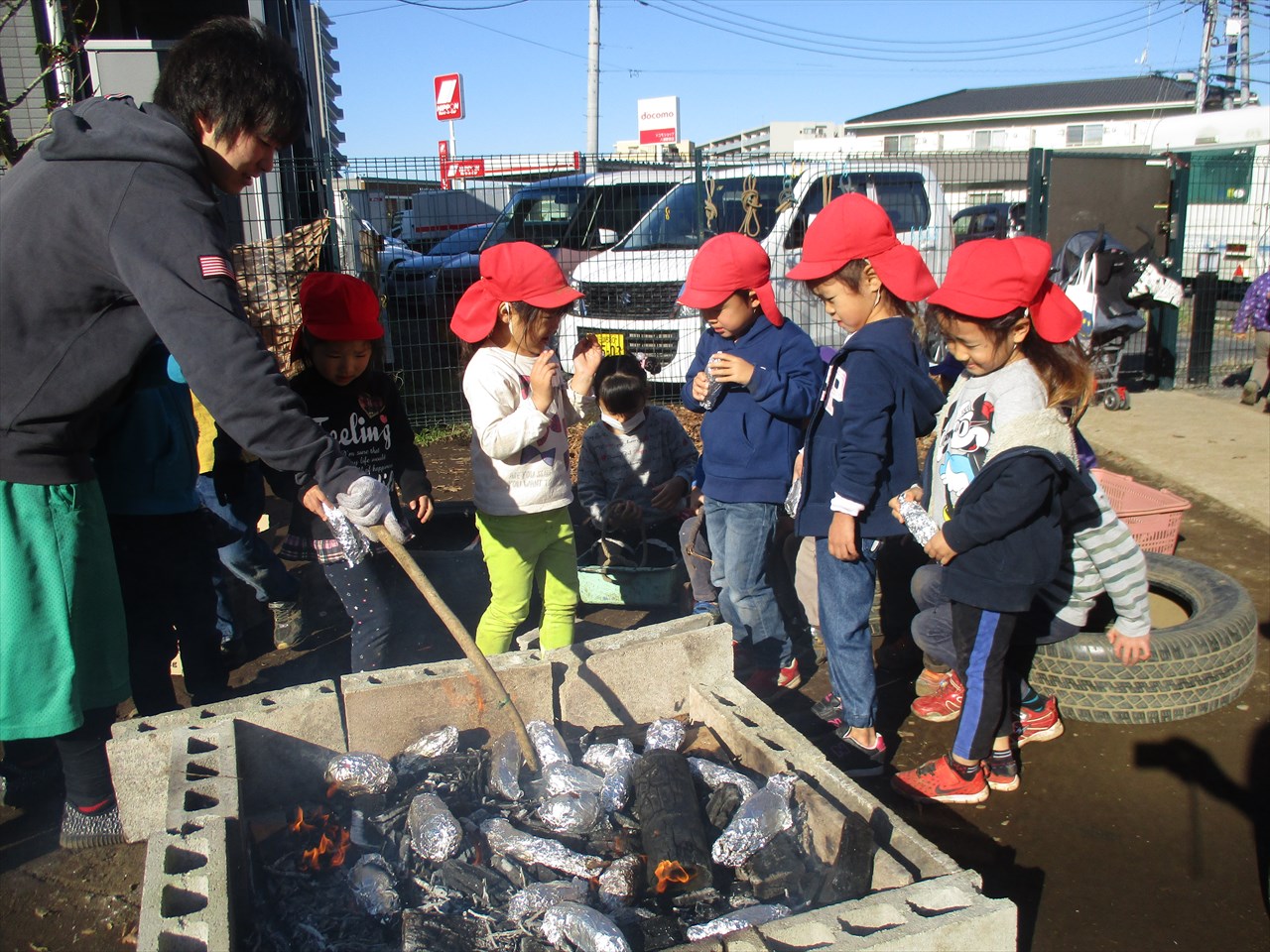 焼き芋の準備♪ お母さんたちもお手伝いしてくれました。