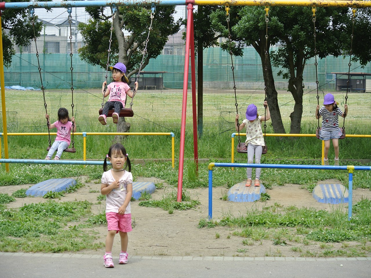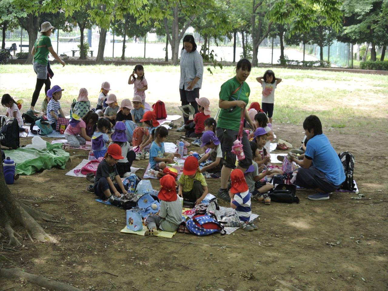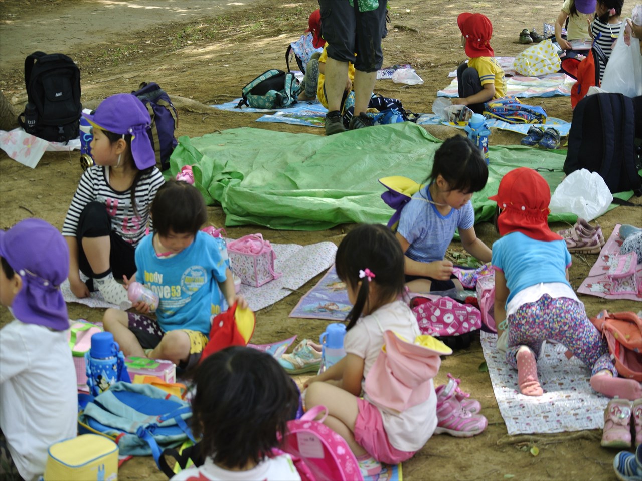 以前、采女の里のおばあちゃんたちから頂いたヒヨコが目にとまりました。・・おばあちゃんたちに教えてあげましたよ^^ 公園到着。遊ぶよりも、まずは『おなかすいた〜』『おべんとまーだー???』