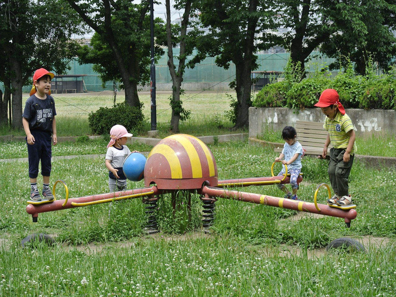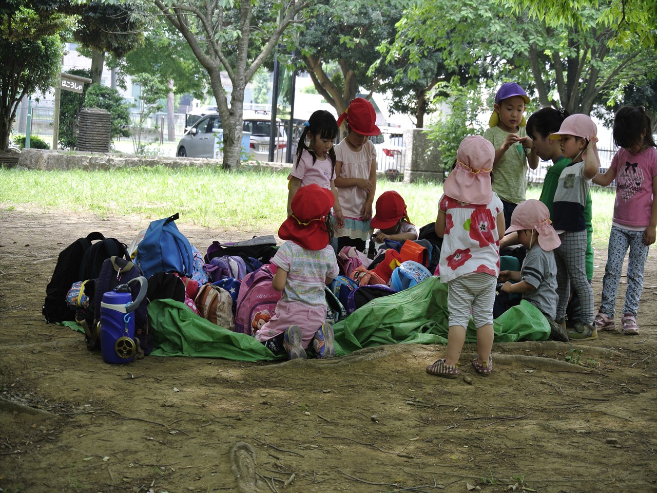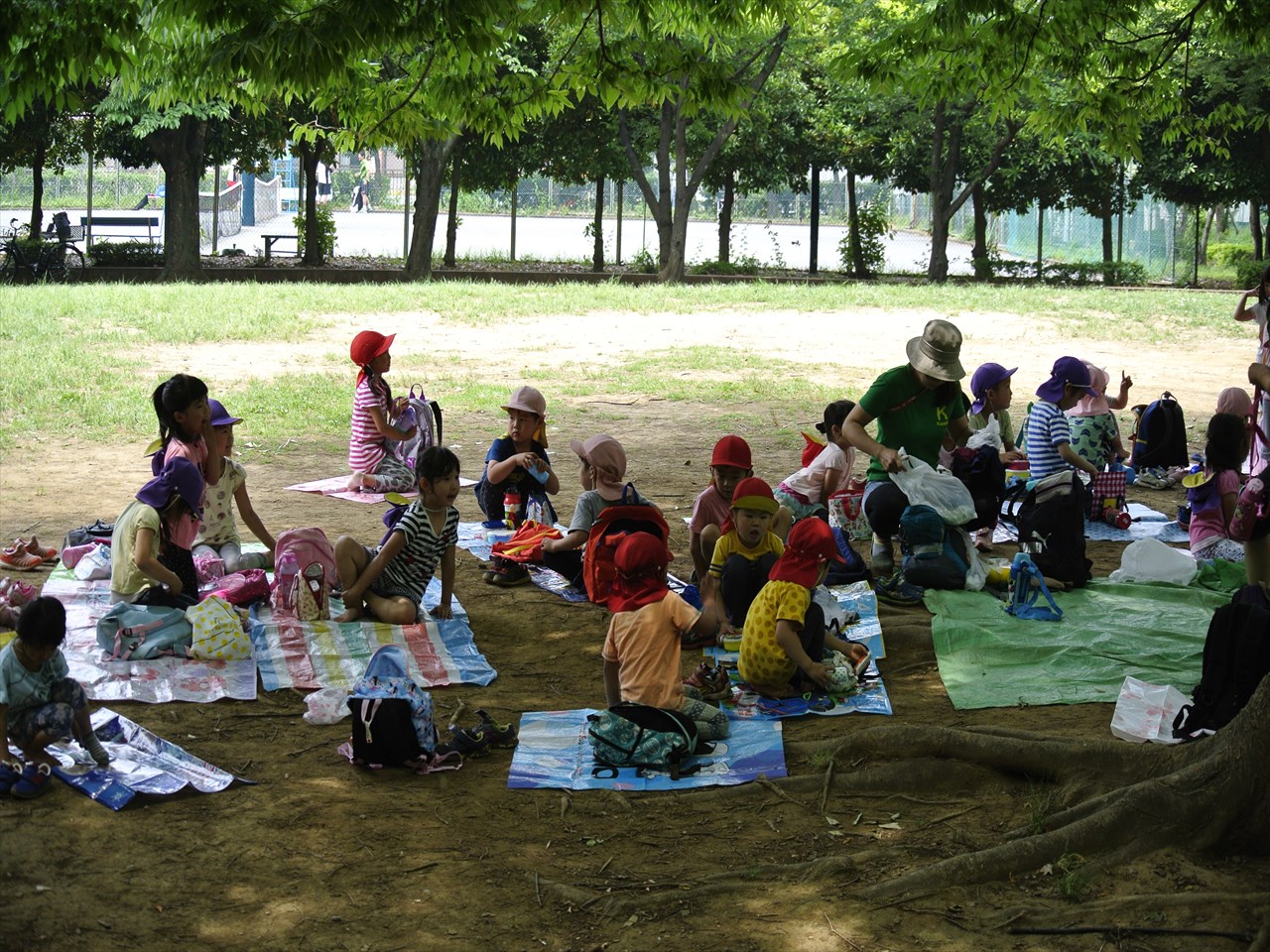 以前、采女の里のおばあちゃんたちから頂いたヒヨコが目にとまりました。・・おばあちゃんたちに教えてあげましたよ^^ 公園到着。遊ぶよりも、まずは『おなかすいた〜』『おべんとまーだー???』