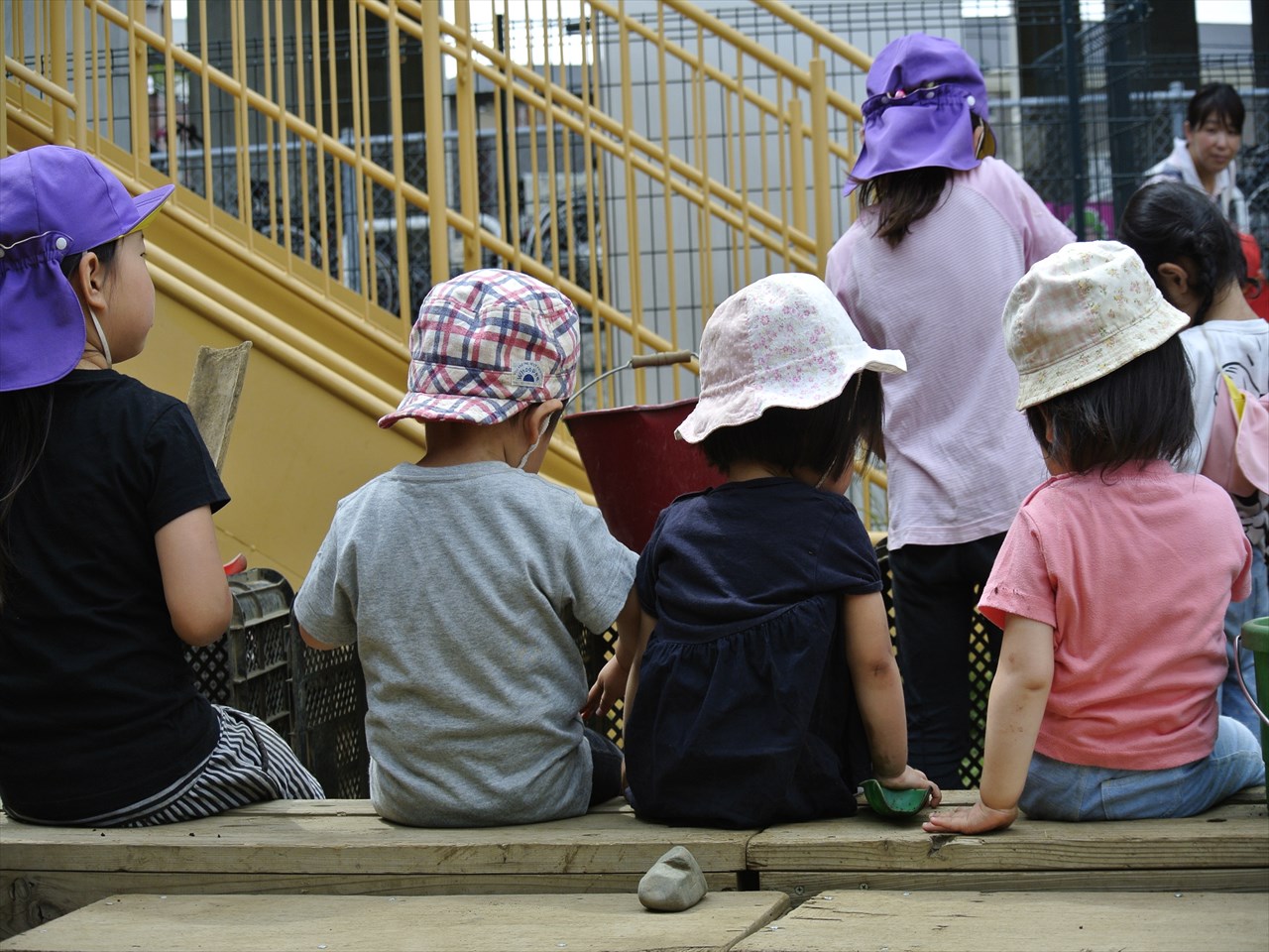 ぶどう組のおねえちゃんたちは何やってるんだろう〜??と気になる!気になる!! でも、おねえちゃんたちは手を出されないように、こっちこっち・・とベンチに座らせてくれました。