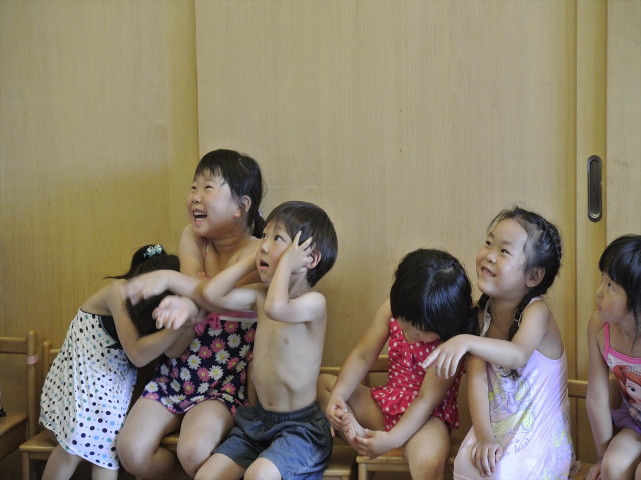 今日はプール開き。みんなでサンダルや水着の着方を確認し、プールでの約束事も確認。そして・・・・・