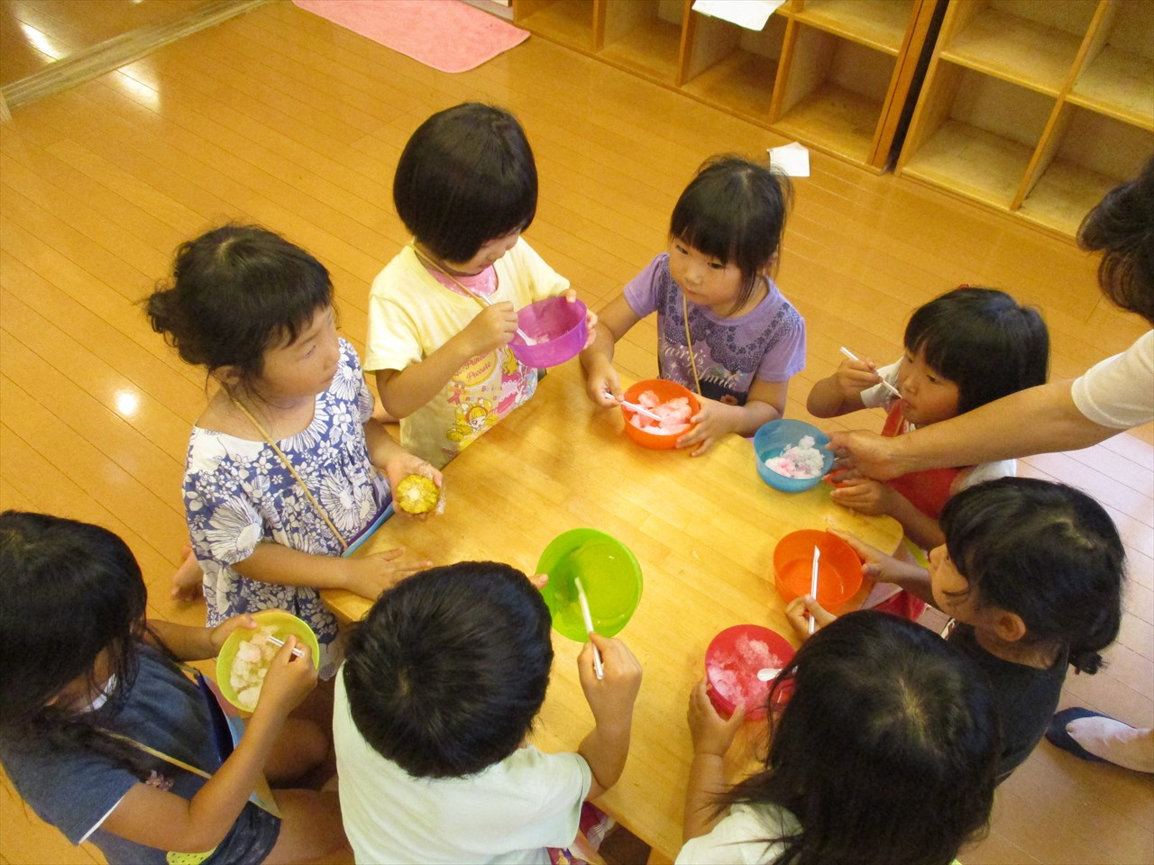 今日は夏まつり いつものおやつにちょっと夏をプラスして、かき氷や冷やしきゅうり