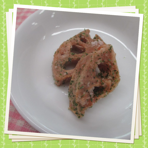 ②柔らかく煮たれんこんに片栗粉をまぶし、揚げ油で揚げる。