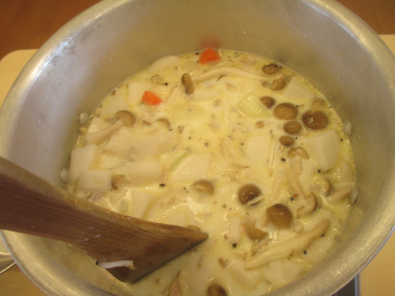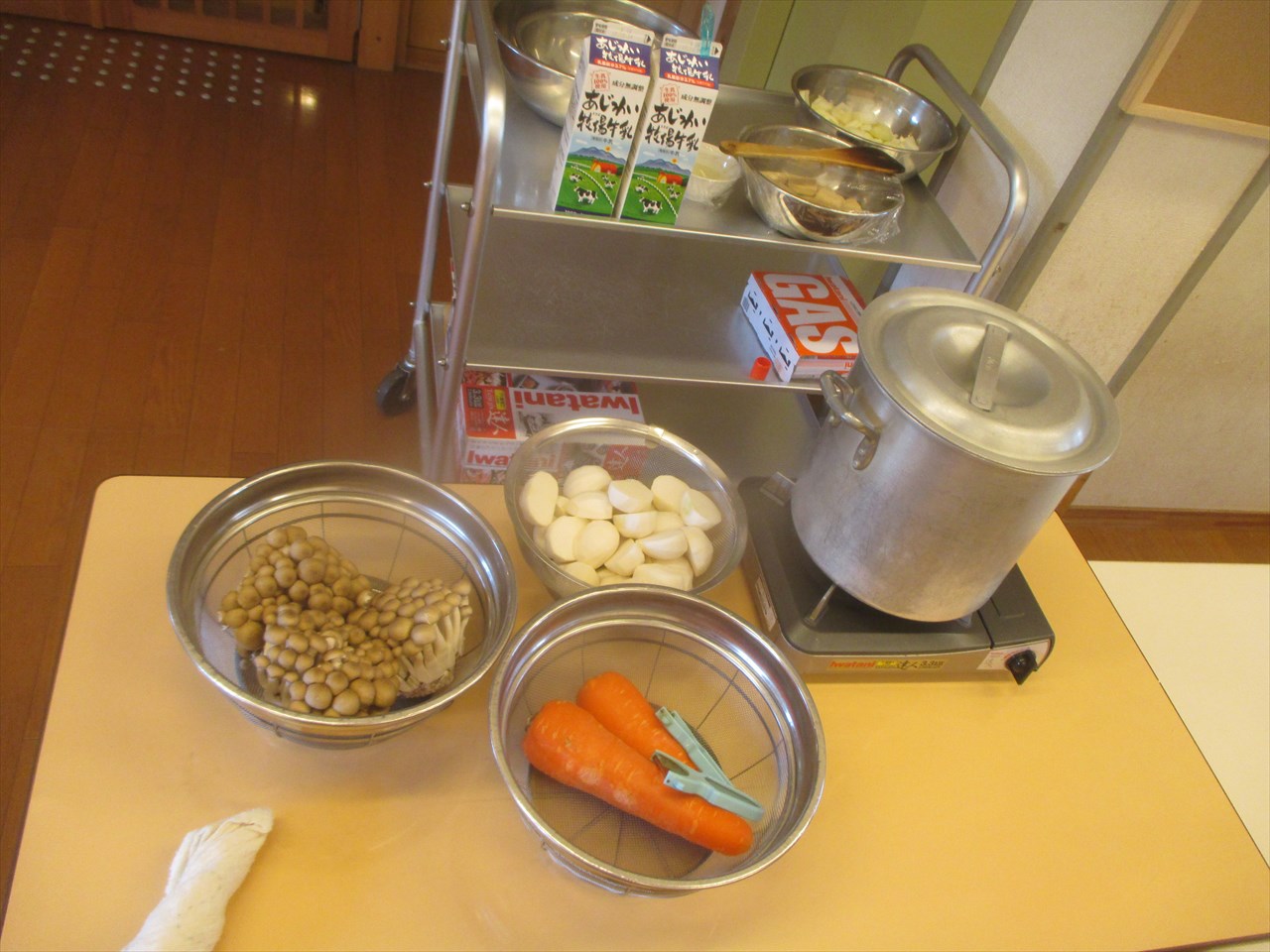 ぶどう組が育てたカブを収穫して、カブ入りシチューを作りました。