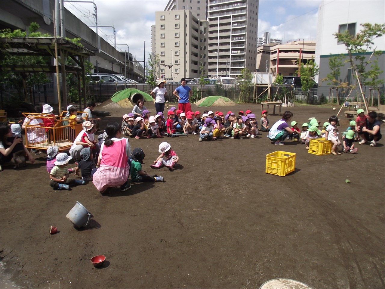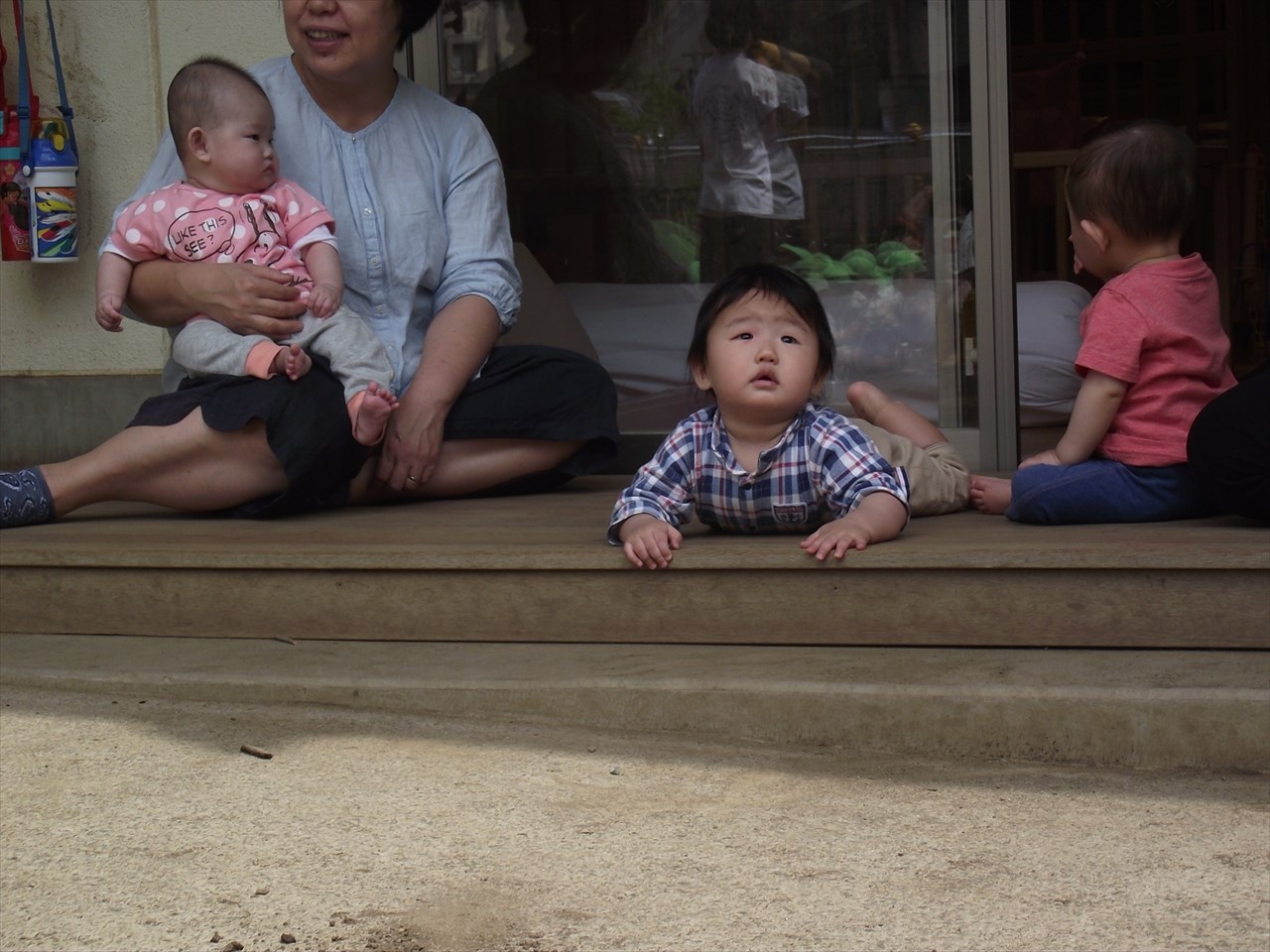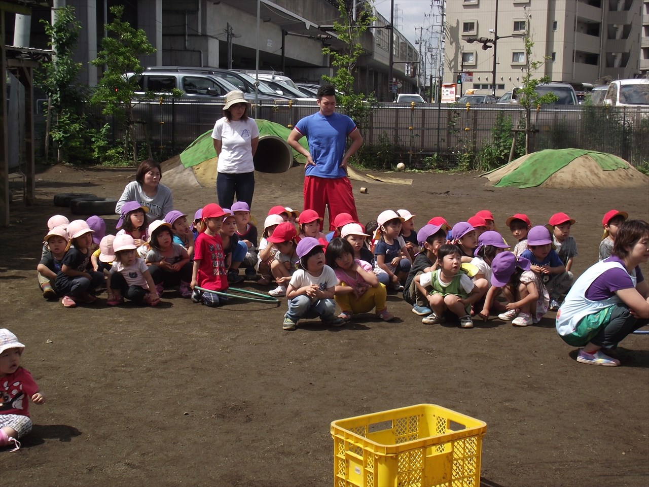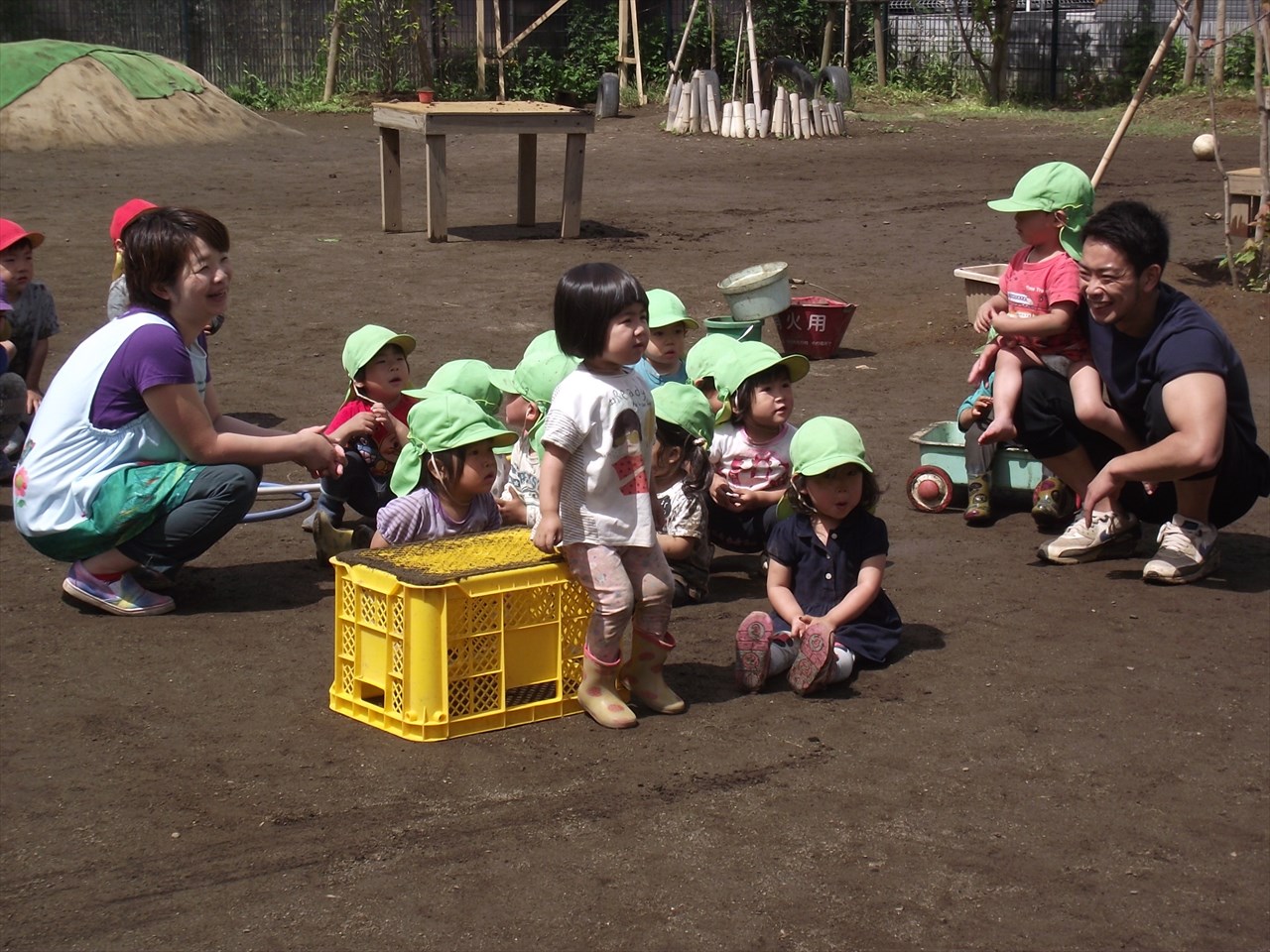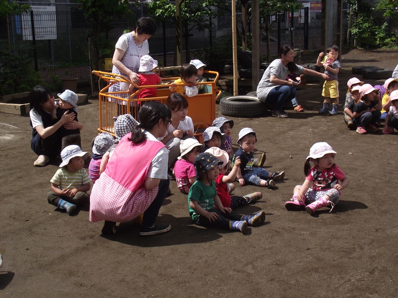 今日は給食室から出火したという想定で避難訓練を行いました。 ゆず組も参加。